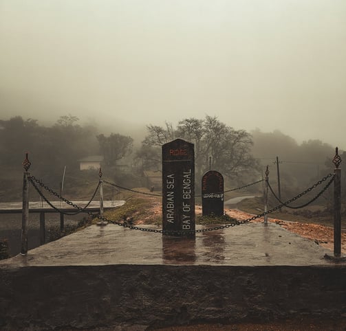 A "Ridge" is a region of high barometric pressure that divides rainwater. A British officer from the early era discovered Ridge Point and placed a stone platform here indicating the direction of flow of water between Arabian Sea and Bay of Bengal.